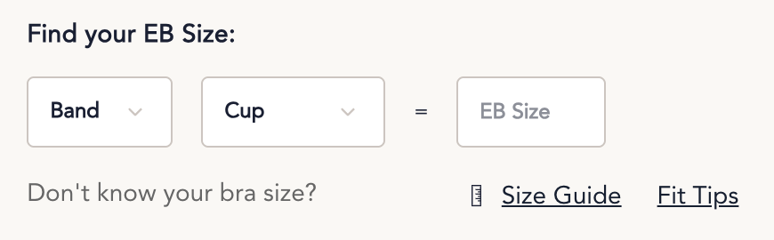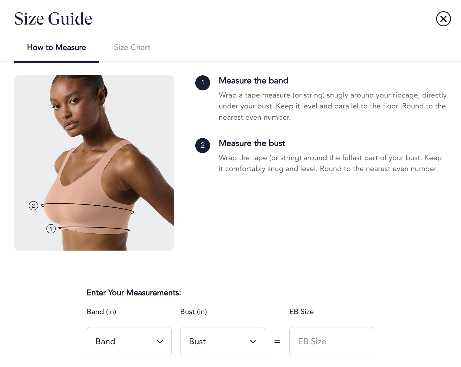 The best way to determine your size is to measure your underbust and bust. To find the Measurement Calculator, click Size Guide under the Traditional Bra Size Calculator.